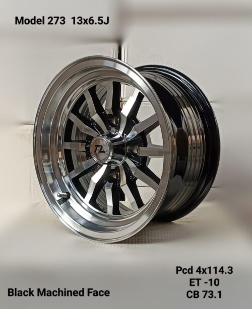 SET OF 4 – 13×6.5J ET-10 4×114.3 PCD CB 73.1 BLACK MACHINED FACE MAGS