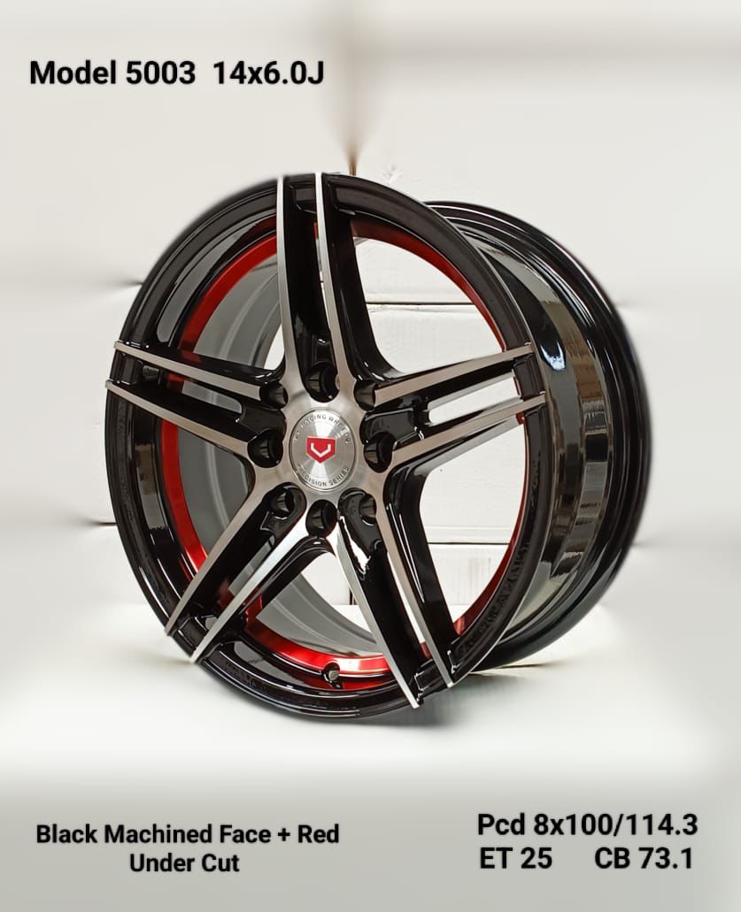 SET OF 4 – 14×6.0J ET25 8×100/114.3 PCD CB 73.1 BLACK MACHINED FACE + RED UNDER CUT MAGS