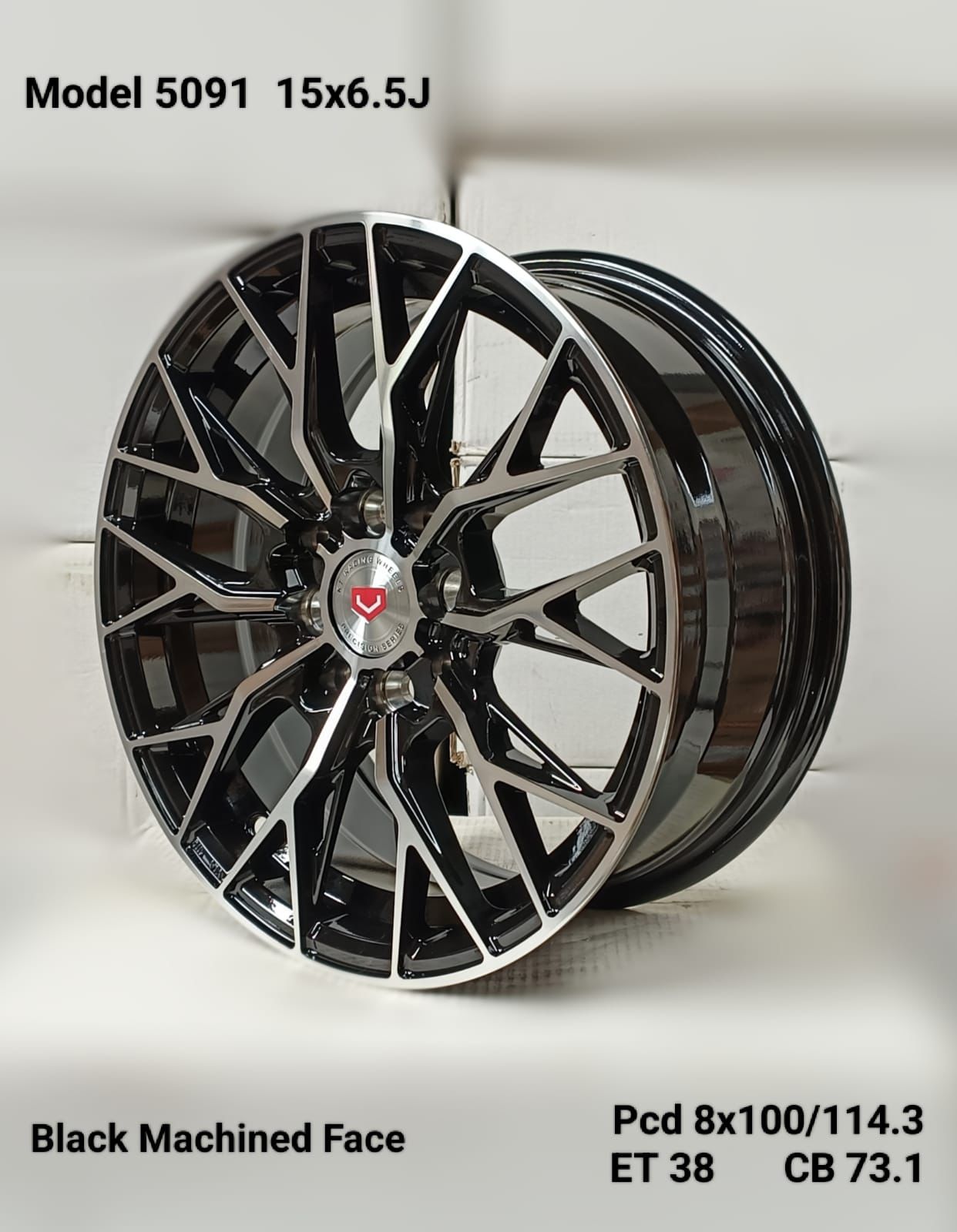 SET OF 4 – 15×6.5J ET38 8×100/114.3 PCD CB 73.1 BLACK MACHINED FACE MAG WHEELS