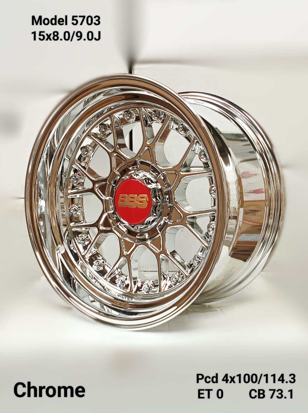 SET OF 4 – 15×8.0/9.0J ET0 4×100/114.3 PCD CB 73.1 CHROME MAG WHEELS