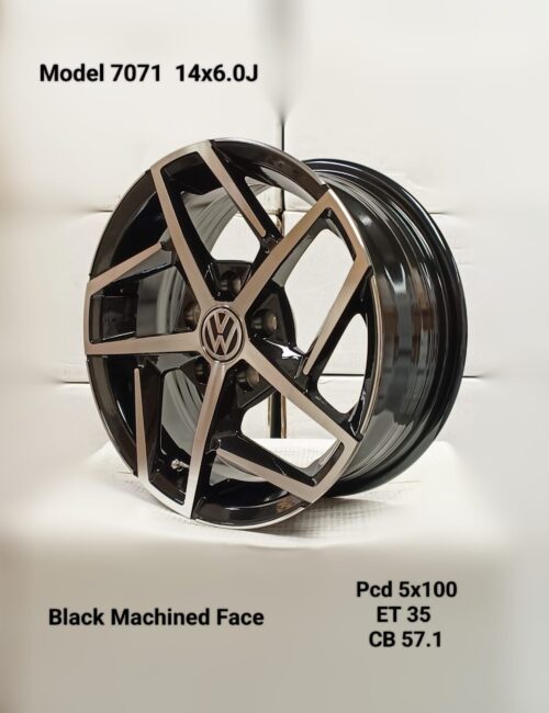 SET OF 4 – 14×6.0J ET35 5/100 PCD CB 57.1 BLACK MACHINED FACE MAGS