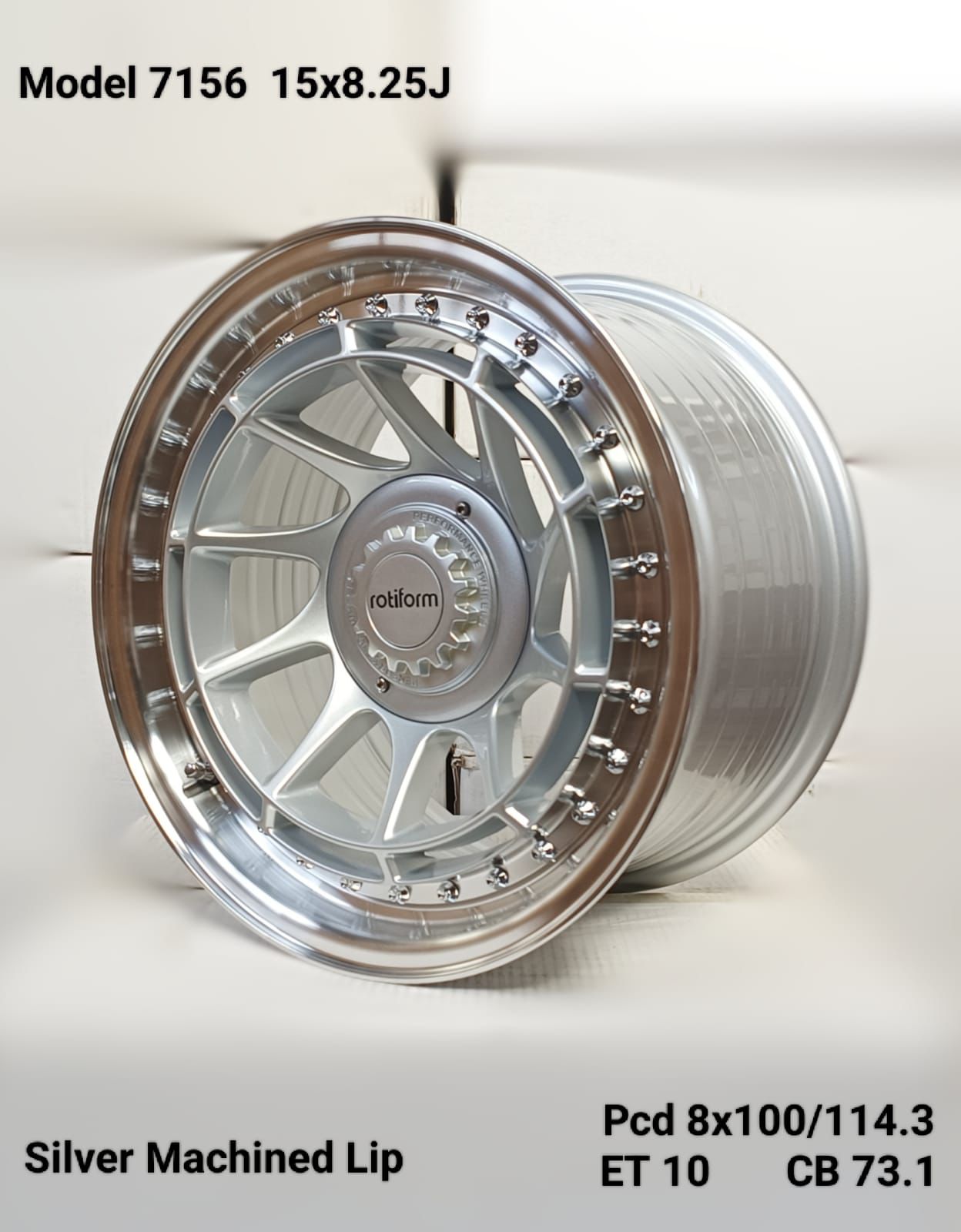SET OF 4 – 15×8.25J ET10 8×100/114.3 PCD CB 73.1 SILVER MACHINED LIP MAG WHEELS