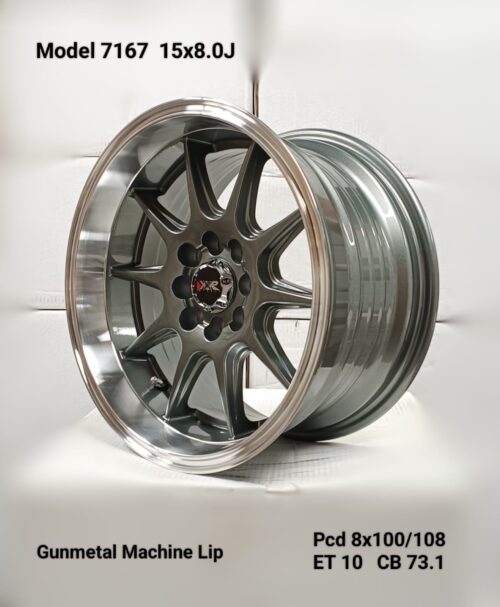 SET OF 4 – 15×8.0J ET10 8×100/108 PCD CB 73.1 GUNMETAL MACHINED LIP MAG WHEELS