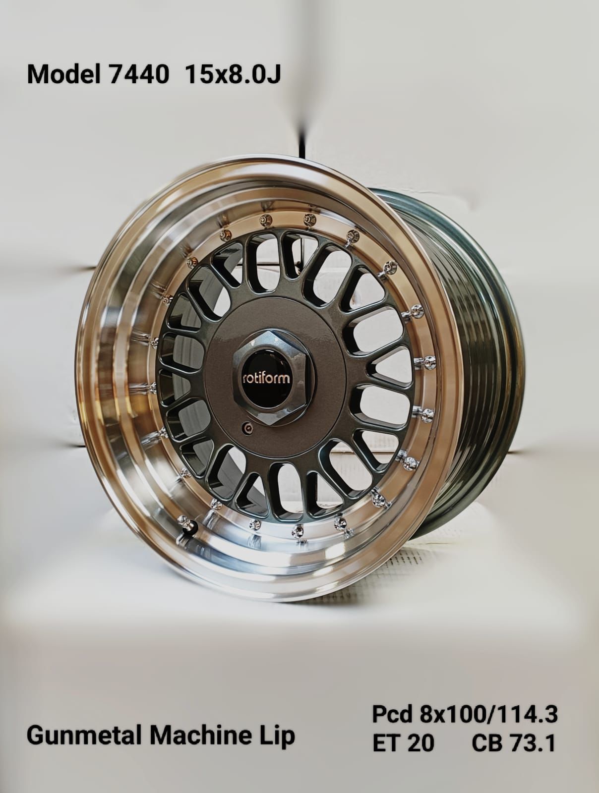 SET OF 4 – 15×8.0J ET20 8×100/114.3 PCD CB 73.1 GUNMETAL MACHINED LIP MAG WHEELS
