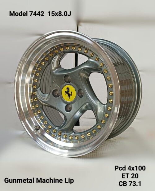 SET OF 4 – 15×8.0J ET20 4×100 PCD CB 73.1 GUNMETAL MACHINED LIP MAG WHEELS