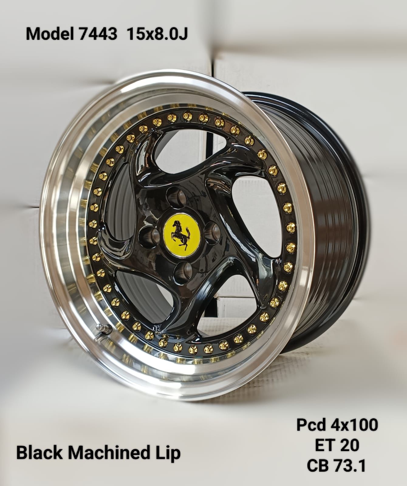 SET OF 4 – 15×8.0J ET20 4×100 PCD CB 73.1 BLACK MACHINED FACE MAG WHEELS