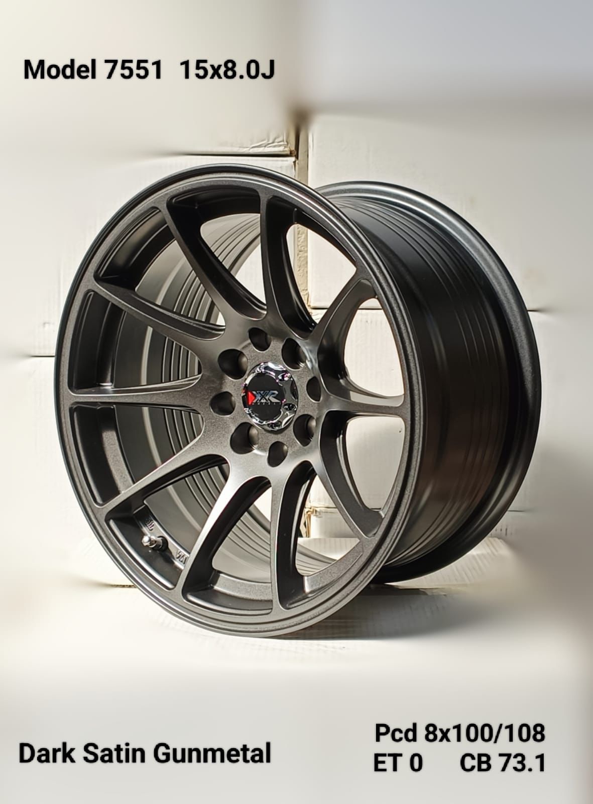SET OF 4 – 15×8.0J ET 0 8×100/108 PCD CB 73.1 DARK SATIN GUNMETAL MAG WHEELS