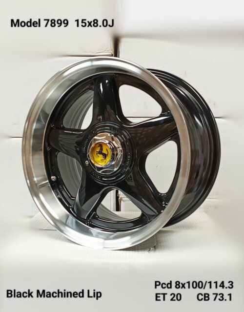 SET OF 4 – 15×8.0J ET20 8×100/114.3 PCD CB 73.1 BLACK MACHINED LIP MAG WHEELS