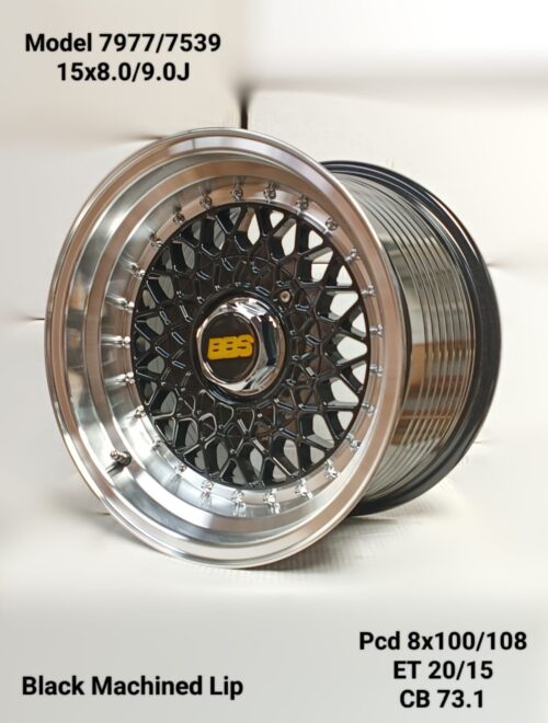 SET OF 4 – 15×8.0/9.0J ET20/15 8×100/108 PCD CB 73.1 BLACK MACHINED LIP MAG WHEELS
