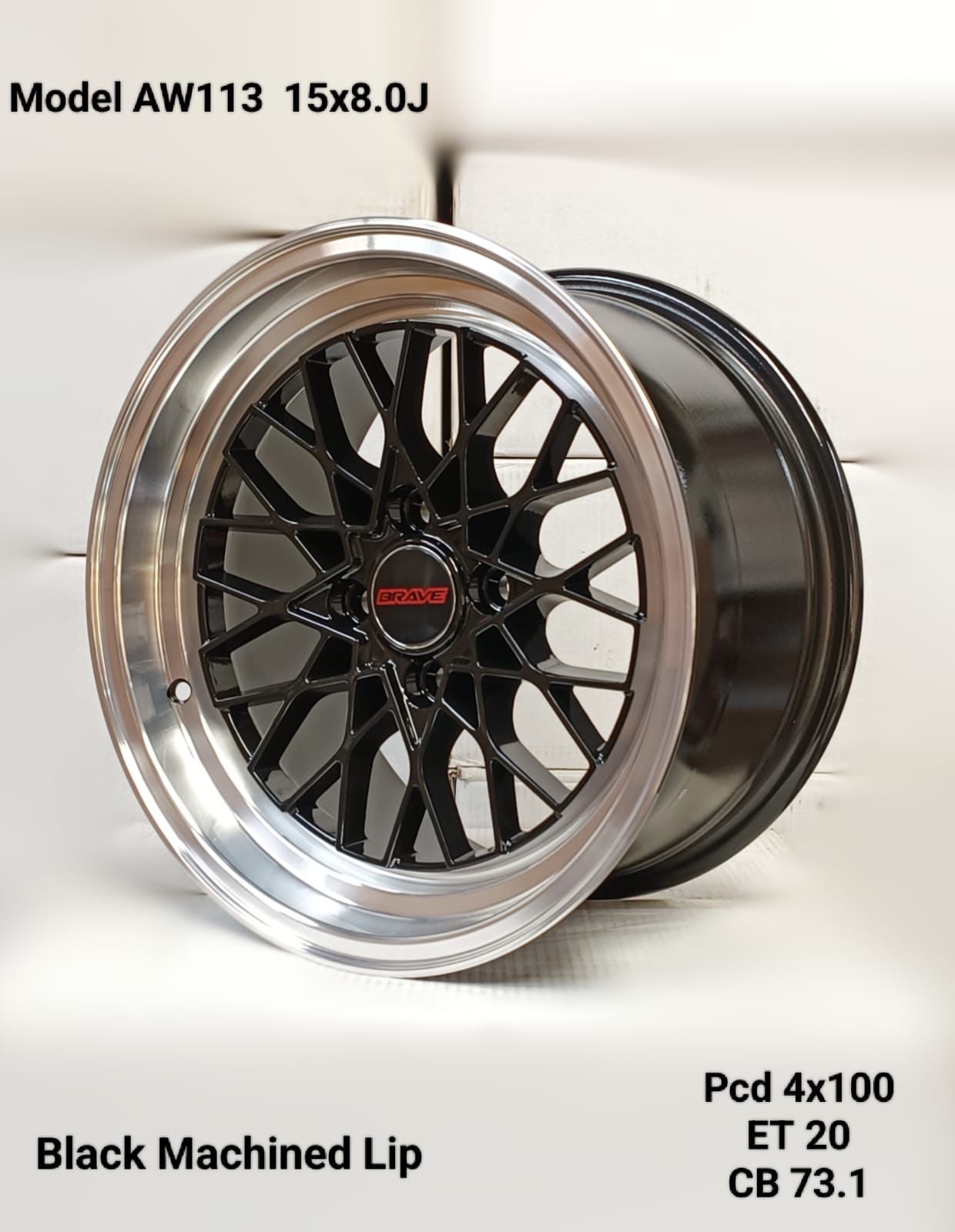 SET OF 4 – 15×8.0J ET20 4×100 PCD CB 73.1 BLACK MACHINED LIP MAG WHEELS