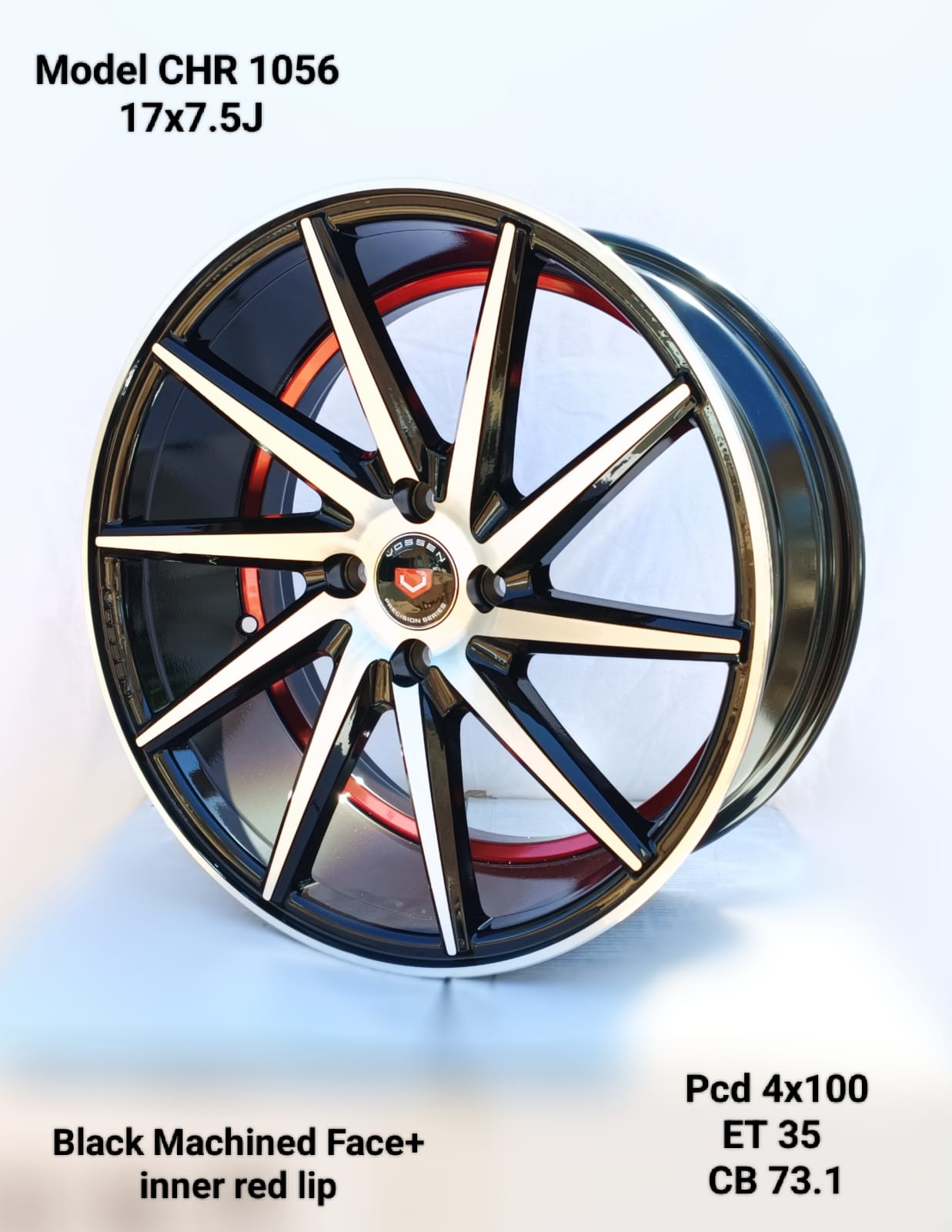 SET OF 4 – 17×7.5J ET35 4×100 PCD CB 73.1 BLACK MACHINED FACE + INNER RED LIP MAG WHEELS