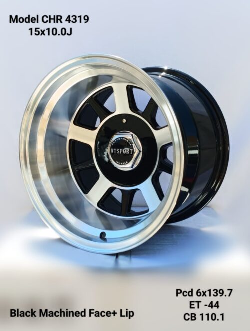 SET OF 4 – 15×10.0J ET-44 6×139.7 PCD CB 110.1 BLACK MACHINED FACE + LIP MAG WHEELS