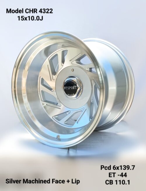 SET OF 4 – 15×10.0J ET-44 6×139.7 PCD CB 110.1 SILVER MACHINED FACE + LIP MAG WHEELS