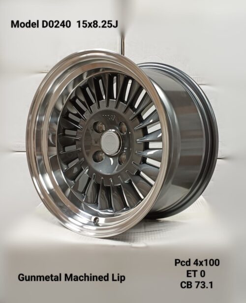 SET OF 4 – 15×8.25J ET0 4×100 PCD GUNMETAL MACHINED LIP MAG WHEELS