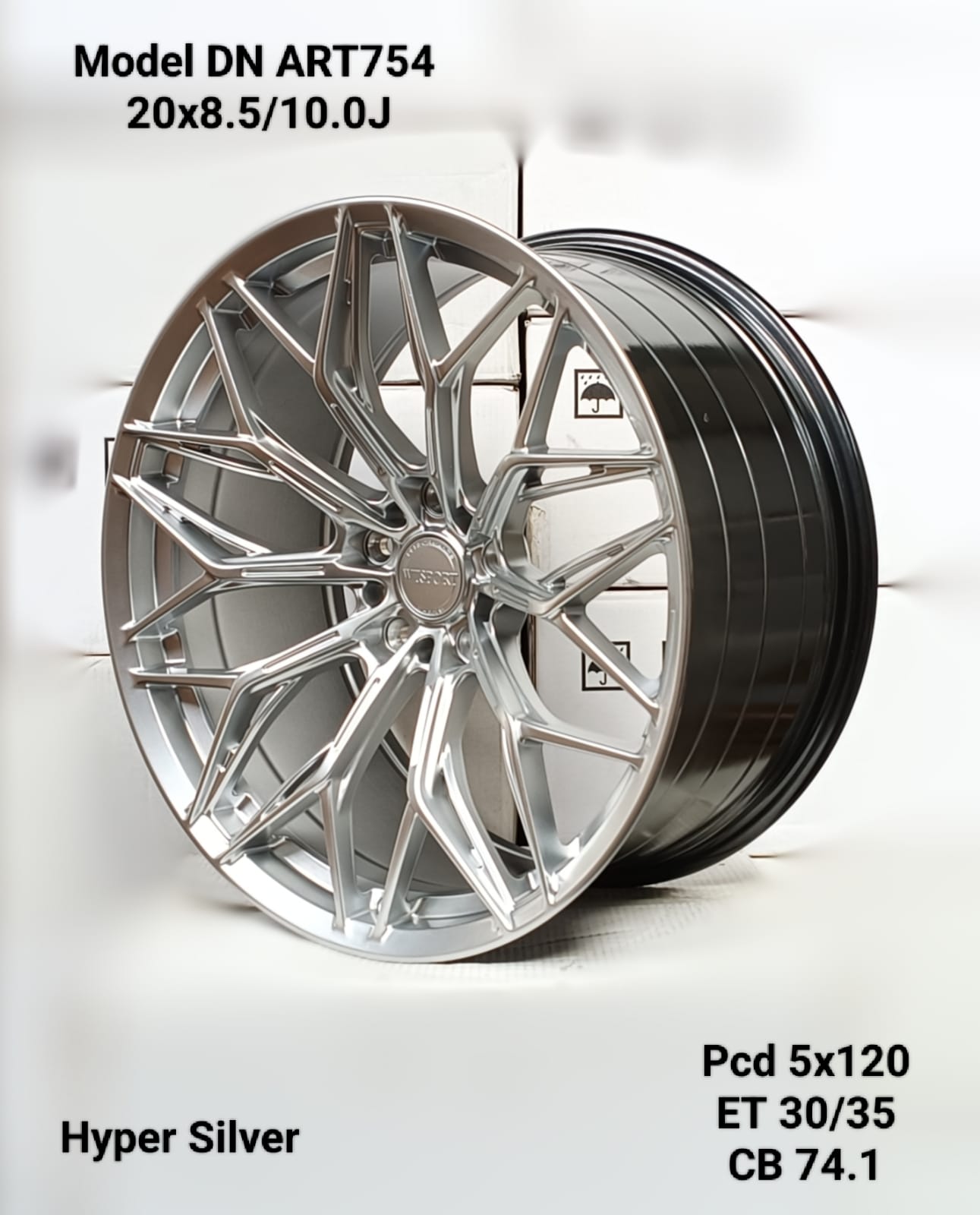 SET OF 4 – 20×8.5/10.0J ET30/35 5×120 PCD CB 74.1 HYPER SILVER MAG WHEELS