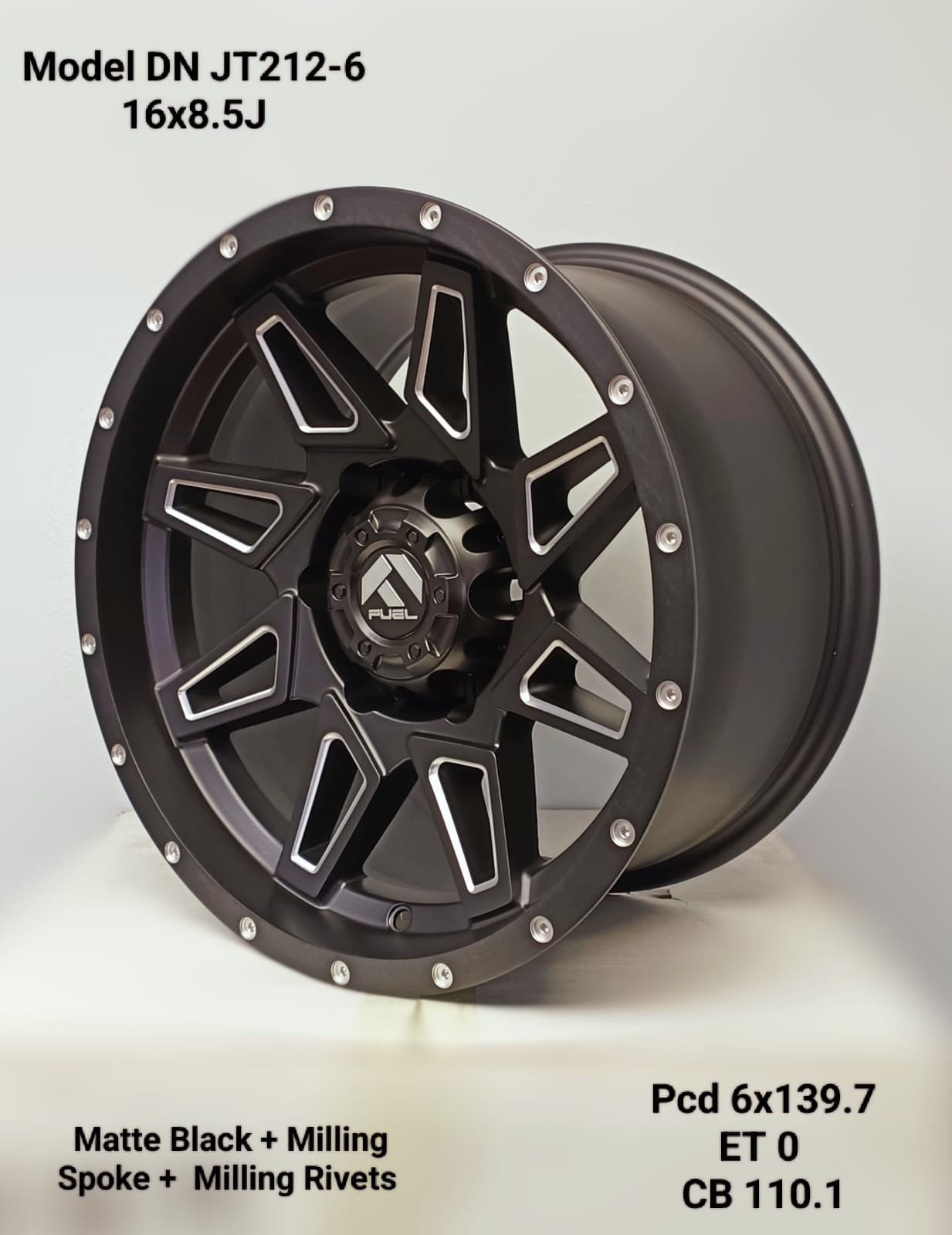 SET OF 4 – 16×8.5J ET0 6×139.7 PCD CB 110.1 MATTE BLACK + MILLING SPOKES + MILLING RIVETS MAG WHEELS