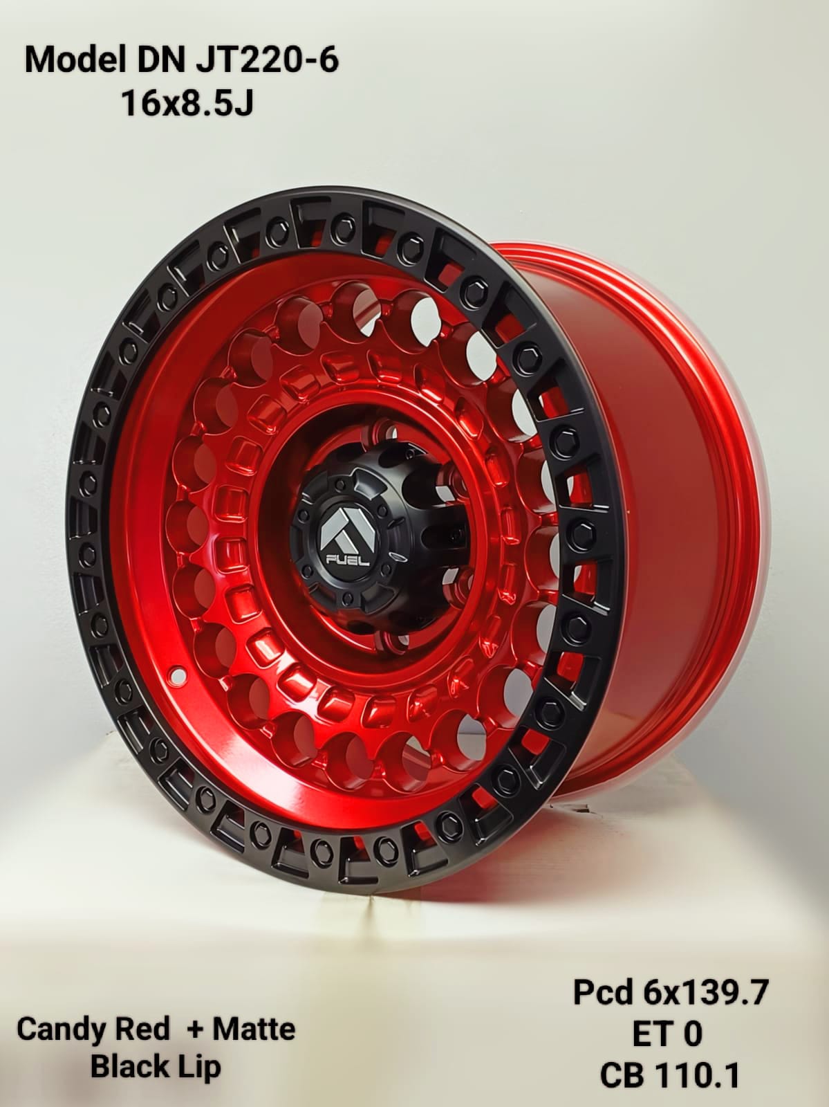 SET OF 4 – 16×8.5J ET0 6×139.7 PCD CB 110.1 CANDY RED + MATTE BLACK LIP MAG WHEELS