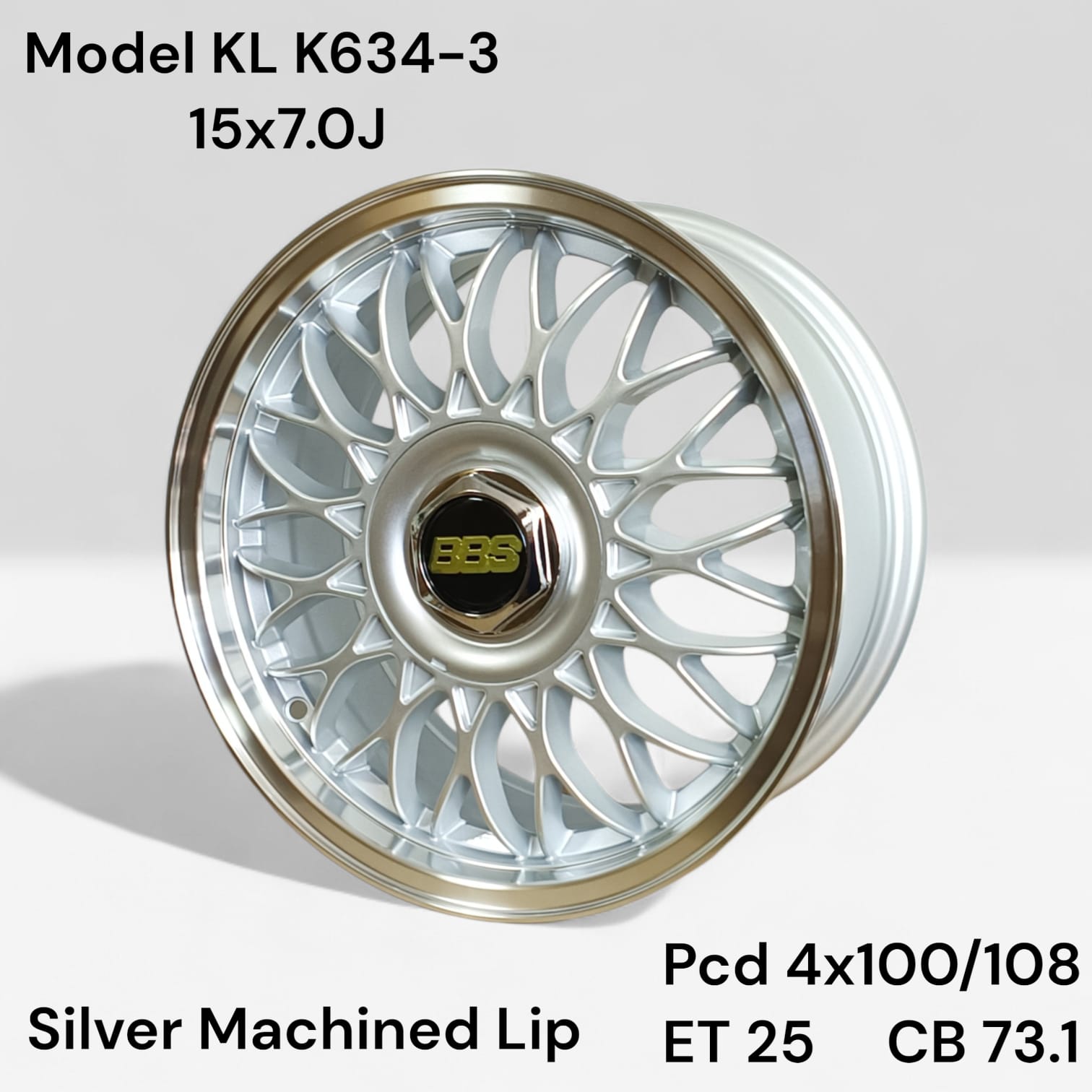 SET OF 4 – 15×7.0J ET25 4×100/108 PCD CB73.1 SILVER MACHINED LIP MAG WHEELS