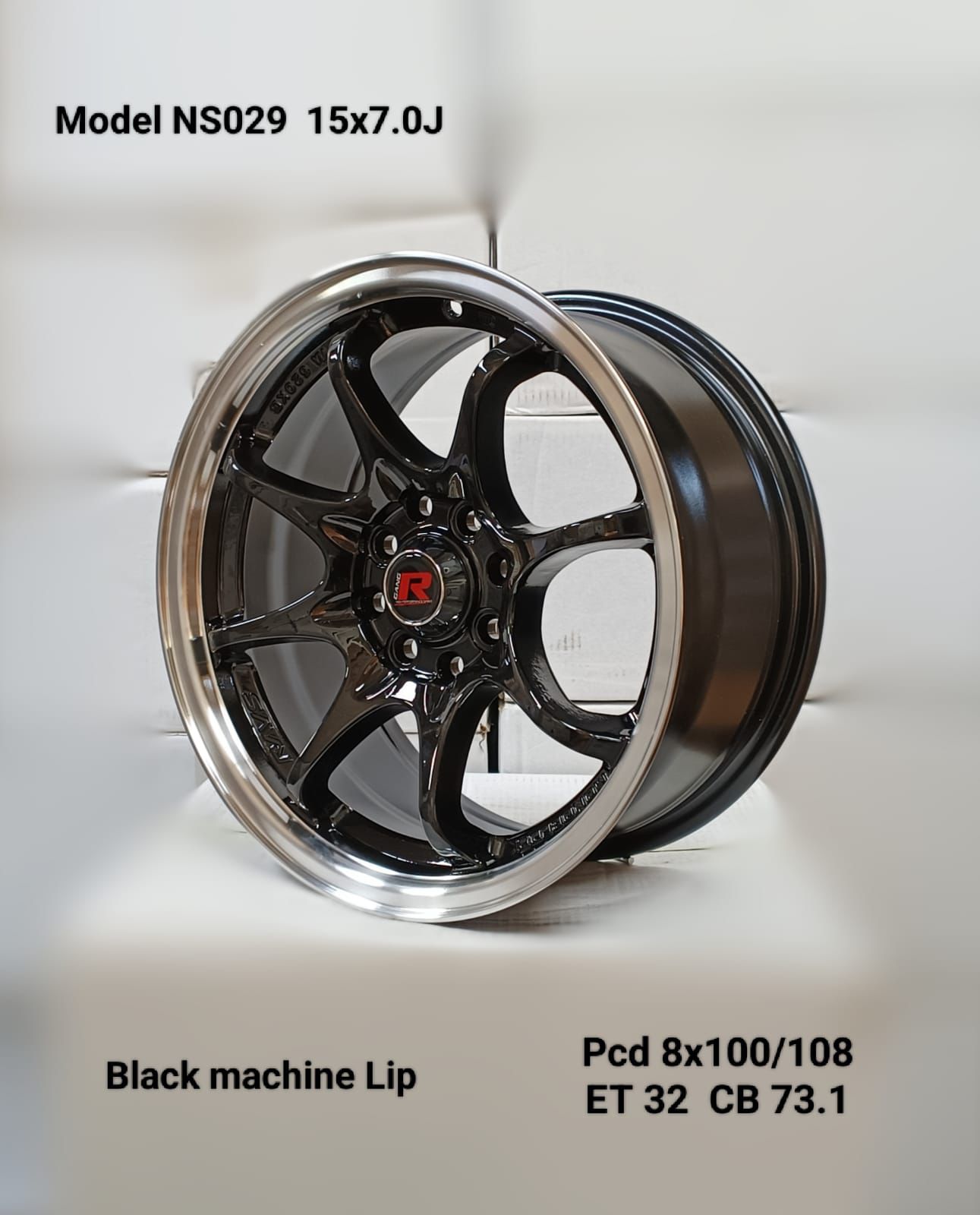 SET OF 4 – 15×7.0J ET32 8×100/108 PCD CB 73.1 BLACK MACHINED LIP MAG WHEELS